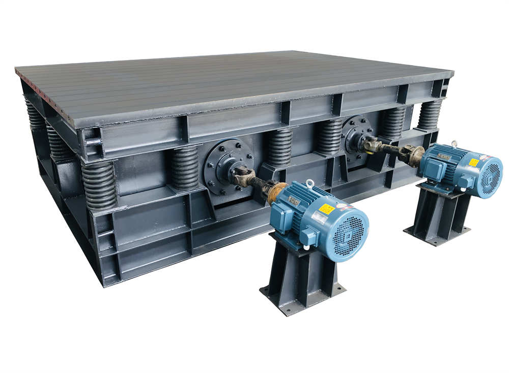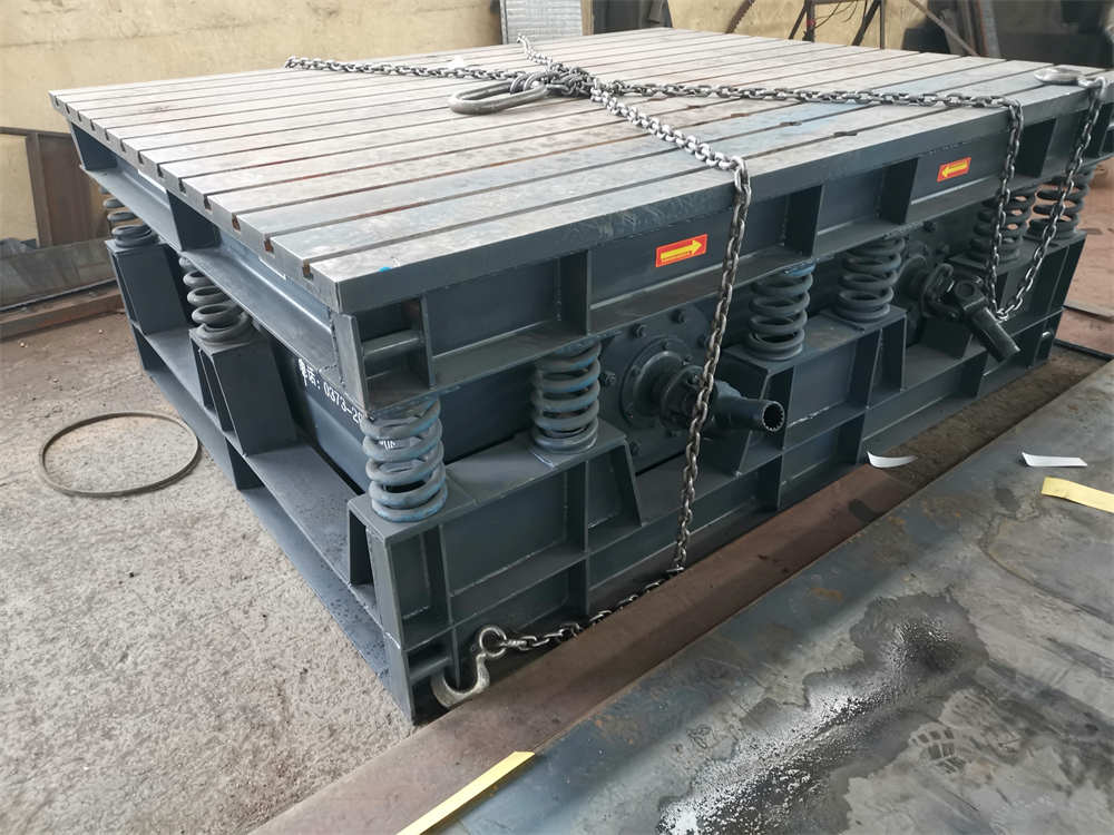 主要包括機座,平臺殼體,安裝在殼體內(nèi)的若干個激振箱,貫穿激振箱的傳動軸,激振器,驅(qū)動電機,變頻控制裝置,減震彈簧等。