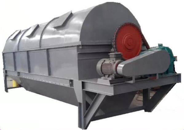 滾筒篩主要有電機(jī)、減速機(jī)、滾筒裝置、機(jī)架、密封蓋、進(jìn)出料口組成。滾筒裝置傾斜安裝于機(jī)架上。電動(dòng)機(jī)經(jīng)減速機(jī)與滾筒裝置通過(guò)聯(lián)軸器連接在一起,驅(qū)動(dòng)滾筒 裝置繞其軸線轉(zhuǎn)動(dòng)。當(dāng)物料進(jìn)入滾筒裝置后,由于滾筒裝置的傾斜與轉(zhuǎn)動(dòng),使篩面上的物料翻轉(zhuǎn)與滾動(dòng),使合格物料(篩下產(chǎn)品)經(jīng)滾筒后端底部的出料口排出,不 合格的物料(篩上產(chǎn)品)經(jīng)滾筒尾部的排料口排出。由于物料在滾筒內(nèi)的翻轉(zhuǎn)、滾動(dòng),使卡在篩孔中的物料可被彈出,防止篩孔堵塞