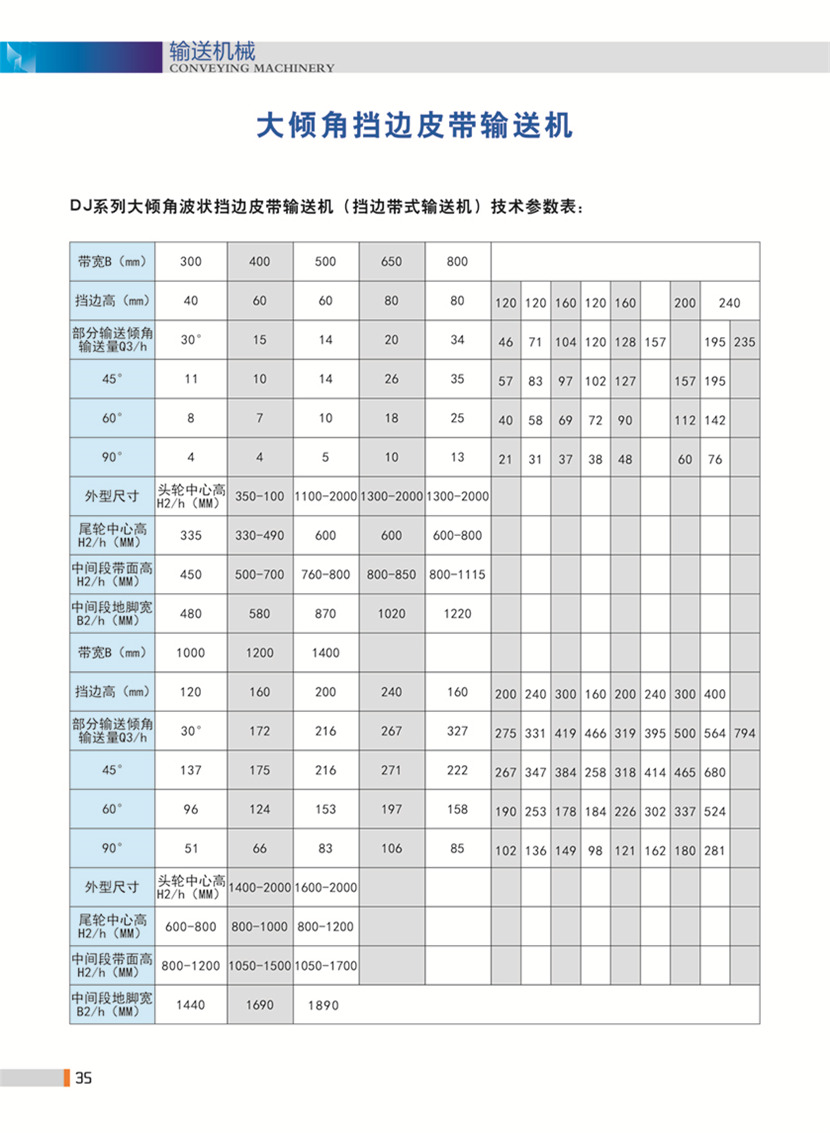| 型號(hào) | 斜料邊高(mm) | 輸送速度(m/s) | 輸送量(傾角<25度)(m3/h) |