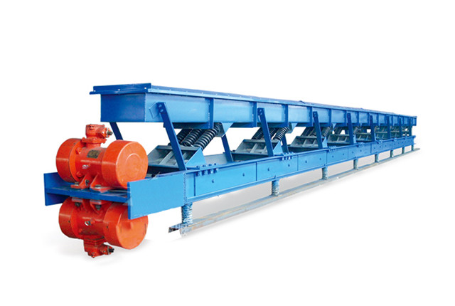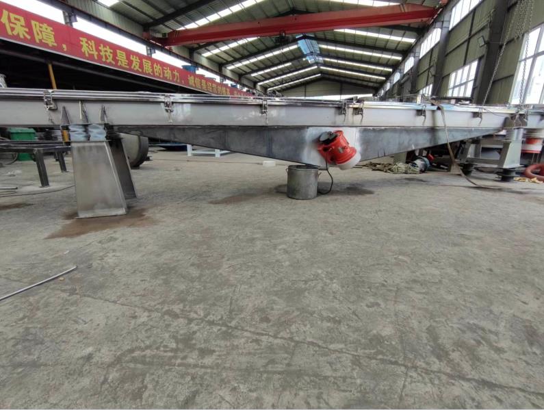 振動輸送機(jī)一般由振源—振動電機(jī)或激振器、承載體、減振支承、承載基礎(chǔ)及相關(guān)配套附件等組成。根據(jù)現(xiàn)場使用環(huán)境及輸送物料特性要求,輸送機(jī)承載體可采用不同材料分別加工成U形槽和管狀等結(jié)構(gòu)形式,并可按有無密封要求制作成敞開型或封閉型,以滿足不同工藝流程;由于設(shè)備承載體是金屬制件及潤滑點(diǎn)遠(yuǎn)離物料,因此,該機(jī)不僅可以輸送各種常溫、普通物料,而且可以輸送很多高溫、有毒等非常規(guī)物料;如對承載體施行特殊加工,則在輸送過程中可實(shí)現(xiàn)物料的篩選、干燥、加溫、冷卻等工藝要求。