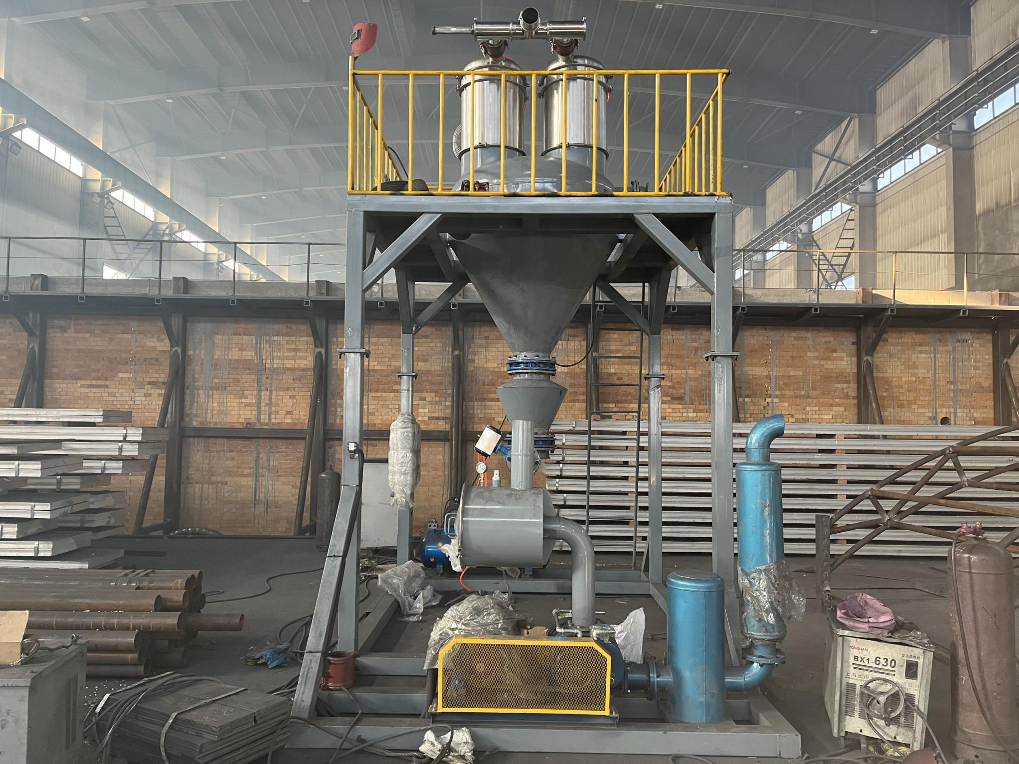 公司針對(duì)新能源、新材料、石墨化預(yù)碳化、鋰電負(fù)極行業(yè)等設(shè)計(jì)的生產(chǎn)線,大功率真空吸料機(jī),輸送距離最達(dá)遠(yuǎn)可達(dá)170米,260°高溫料經(jīng)過(guò)冷卻系統(tǒng)可直接裝進(jìn)噸包。(石墨化坩堝投料設(shè)備,坩堝壓實(shí)設(shè)備,艾奇遜爐投料設(shè)備,石墨化吸料小車,石墨化投料小車,石墨化高溫吸料系統(tǒng))