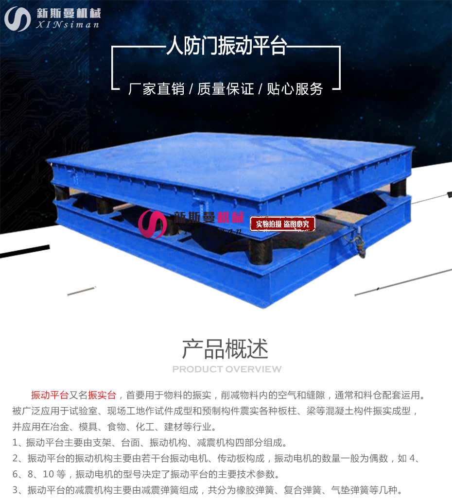 主要由臺底架、振動電機和彈簧等部件組成,臺面與底架均用鋼板和型鋼焊接而成,振動臺是用振動電機加一對相同的偏心輪組成。