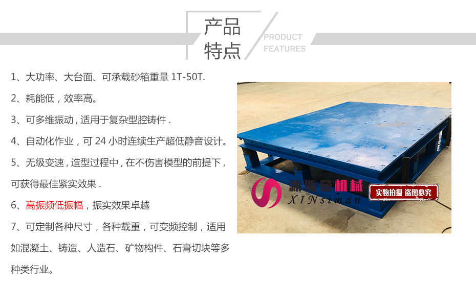 ◆大功率、大臺面;功率可大7.5kw,激振力80KN,可承載10T。