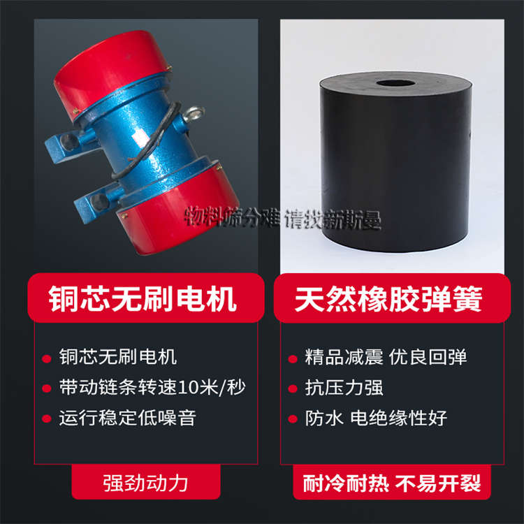 2、振蕩電機為激振源,噪聲低、耗電小、保護簡略。