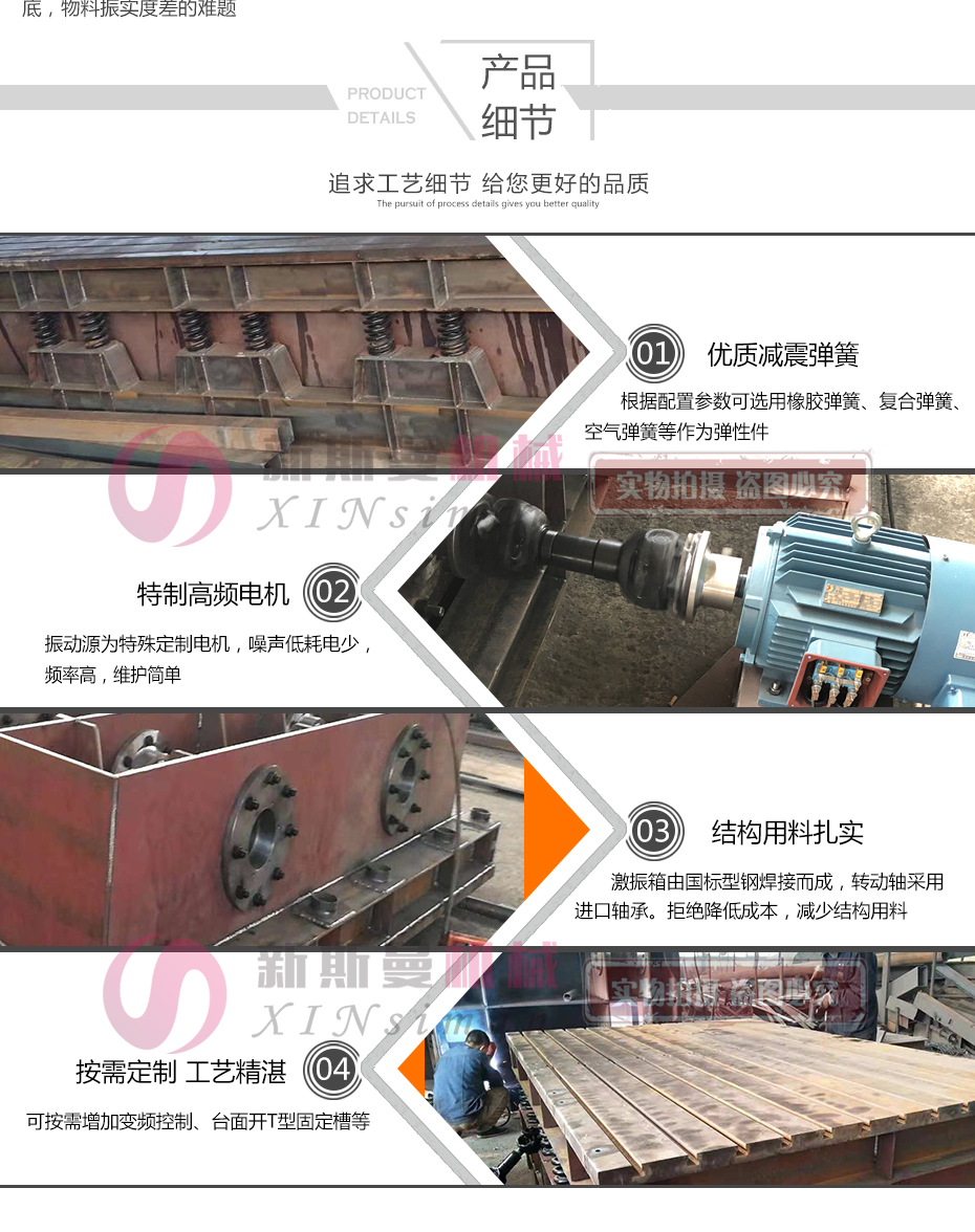 主要包括機座,平臺殼體,安裝在殼體內(nèi)的若干個激振箱,貫穿激振箱的傳動軸,激振器,驅(qū)動電機,變頻控制裝置,減震彈簧等。