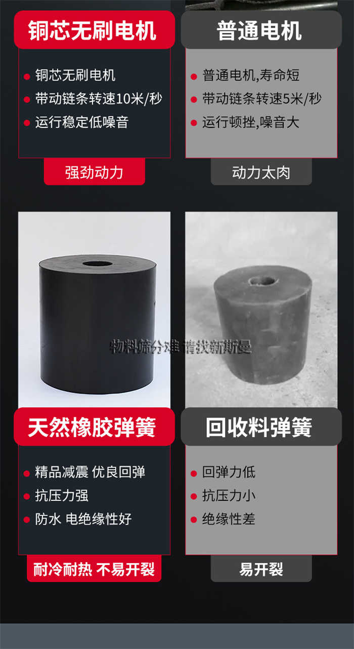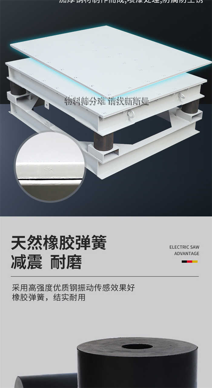 2、振蕩電機為激振源,噪聲低、耗電小、保護簡略。