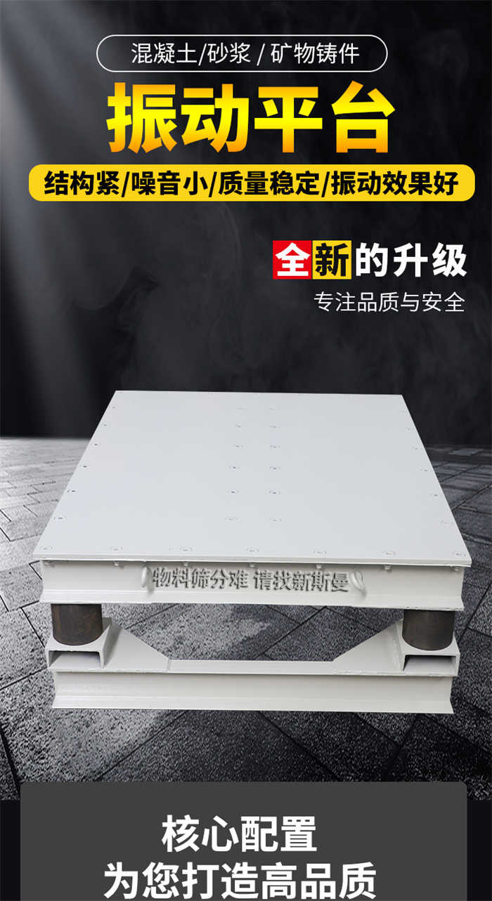 主要由臺底架、振動電機和彈簧等部件組成,臺面與底架均用鋼板和型鋼焊接而成,振動臺是用振動電機加一對相同的偏心輪組成。