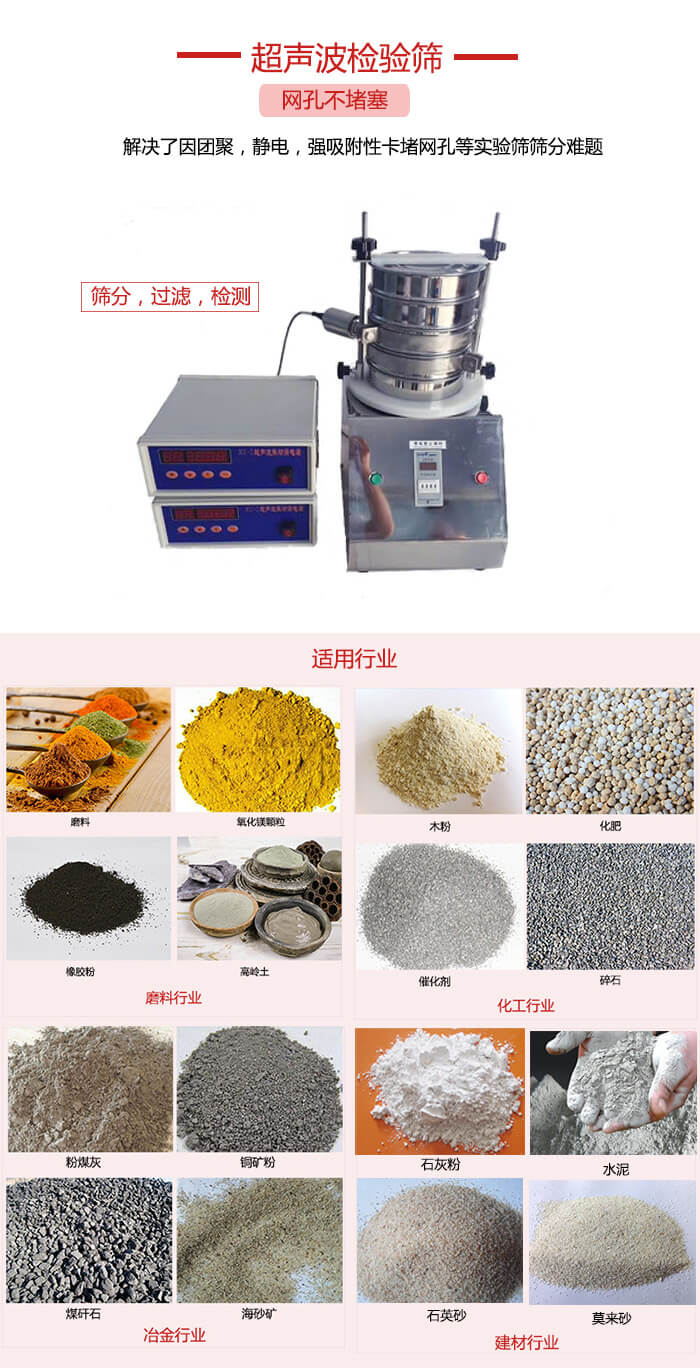 超聲波檢驗(yàn)篩在JYS-200標(biāo)準(zhǔn)檢驗(yàn)篩的基礎(chǔ)上研發(fā)的高科技微細(xì)粉分級(jí)設(shè)備,是當(dāng)前在做微細(xì)粉分樣篩選時(shí)網(wǎng)孔堵塞的有效的解決儀器。