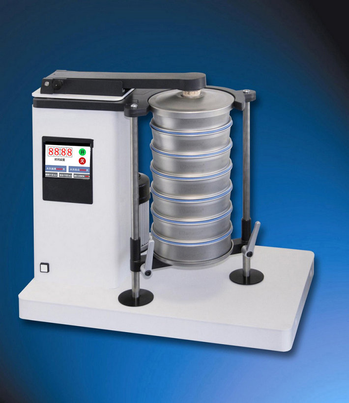 再通過振動盤傳導至安放在振動盤上部篩框上,然后由需要檢測目數(shù)的篩框把小于篩網(wǎng)孔徑的物料顆粒篩分至下層篩框,如此層層篩選,