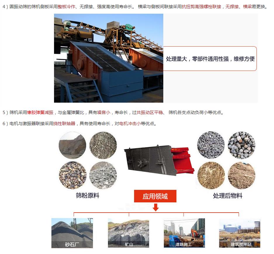 5.采用小振幅,高頻率,大傾角結(jié)構(gòu),使該機篩分效率高、處理棒。