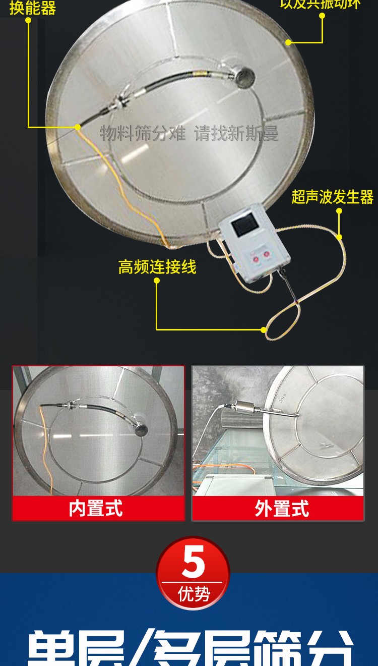 超聲波篩分系統(tǒng)是一種簡單實用、可靠的篩分系統(tǒng),是當前網(wǎng)孔堵塞的有效的解決方法??蓮V泛應用于制藥、冶金、化工、選礦、食品等要求精細篩分過濾的行業(yè),篩分過濾精度高,有效解決因團聚、靜電、強吸附性卡堵網(wǎng)孔等篩分難題,是國內篩分行業(yè)的一項重大技術突破。