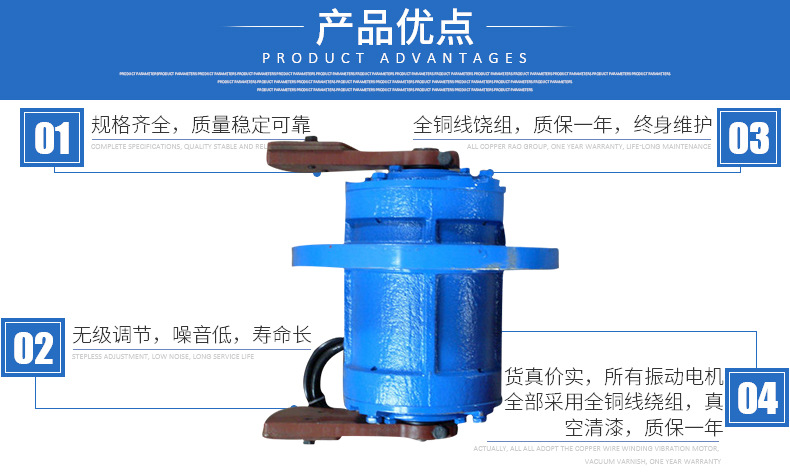 6、振泰立式振動(dòng)電機(jī)選用特制耐震軸承,可靠性高,動(dòng)力搶進(jìn)。